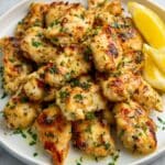 Garlic Herbed Chicken Bites are tender, flavorful pieces of chicken breast marinated in a fragrant blend of garlic, Italian herbs, and paprika. These versatile bites can be cooked on the stovetop, baked, or air fried to crispy perfection, then topped with Parmesan cheese, fresh parsley, and a splash of lemon juice for brightness. Perfect as an appetizer, main dish, salad topper, or snack.