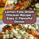 Keywords: Greek chicken, lemon chicken, baked chicken breasts, feta cheese chicken, Mediterranean chicken, healthy chicken recipe
