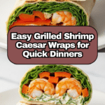 These Grilled Shrimp Caesar Wraps combine perfectly seasoned, juicy grilled shrimp with a creamy homemade Caesar dressing, fresh romaine lettuce, and classic toppings like Parmesan cheese, bacon, and croutons all wrapped in warm flour tortillas. They make a delicious and convenient meal that’s great for lunch or dinner, offering a fresh twist on traditional Caesar salad with the added smoky flavor of the grill.