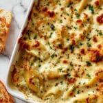 - Rest and Serve: Remove from oven and let stand for 2-3 minutes before serving. Garnish with fresh basil if desired and serve warm with creamy sauce.