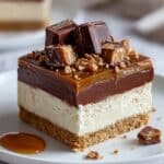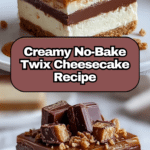 This Homemade No-Bake Twix Cheesecake Delight is a decadent, multi-layered dessert combining a buttery graham cracker crust, rich chocolate layer, creamy cheesecake filling, and luscious caramel drizzle. Perfect for satisfying your sweet tooth without turning on the oven, this no-bake recipe offers a smooth, velvety texture and harmonious flavors that mimic the beloved Twix candy bar in cheesecake form.
