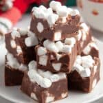 Keywords: hot chocolate fudge, chocolate fudge, marshmallow fudge, no bake fudge, holiday fudge, easy chocolate dessert