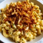 This Hot Honey Chicken Mac n Cheese is a delightful twist on the classic comfort food. Creamy cheddar cheese sauce, tender shredded chicken, and perfectly cooked elbow macaroni are baked together to bubbly perfection and finished with a drizzle of sweet and spicy hot honey for an irresistible flavor combination.