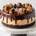Keywords: Reese’s cheesecake, peanut butter cheesecake, chocolate ganache cheesecake, easy cheesecake recipe, dessert, peanut butter cups dessert