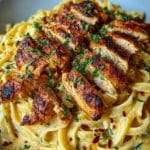 This indulgent creamy mozzarella chicken linguine combines tender Cajun-spiced chicken with a rich garlic butter sauce and melted cheese. It’s a satisfying pasta dish perfect for a comforting weeknight dinner or special occasion.