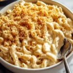 - Bake (Optional): For a baked version, preheat oven to 400°F (200°C). Transfer mac and cheese to a buttered baking dish, sprinkle toasted panko evenly on top, and bake for 10 minutes until the topping is crisp and golden.