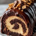 This Irresistible Peanut Butter Cup Chocolate Roll combines a light and fluffy chocolate sponge cake rolled with a creamy peanut butter filling and chopped peanut butter cups, finished with a rich chocolate ganache. Perfect for holiday gatherings or any special occasion, it’s a decadent treat that balances chocolate and peanut butter flavors beautifully.