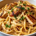 This Irresistibly Easy Cowboy Butter Chicken Linguine is a creamy, flavorful pasta dish featuring tender chicken breasts cooked to perfection and tossed in a rich garlic-butter sauce with a bright lemon zest kick. Ready in just 30 minutes, this comforting meal blends savory spices, fresh herbs, and parmesan cheese for a delightful weeknight dinner that pleases the entire family.