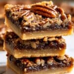 Kentucky Derby Bars are a deliciously rich and nutty dessert bar featuring a buttery shortbread crust topped with a gooey pecan, chocolate, and corn syrup filling. Perfect for parties or as a sweet treat, these bars combine the classic flavors of a pecan pie in a convenient handheld form.