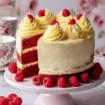This raspberry cake with lemon buttercream is a delightful blend of sweet and tart flavors. Moist layers of tender cake are studded with fresh raspberries and topped with a zesty lemon frosting, perfect for any special occasion or a simple treat.