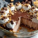 Keywords: No-Bake Peanut Butter Pie, Cream Cheese Pie, Chocolate Whipped Cream, Easy Dessert, No Bake Pie, Peanut Butter Dessert