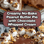 This No-Bake Cream Cheese Peanut Butter Pie with Chocolate Whipped Cream is a luscious and creamy dessert that combines the rich flavors of creamy peanut butter and smooth cream cheese with a light, fluffy chocolate whipped cream topping. Featuring a buttery graham cracker crust, this pie is easy to prepare without baking and perfect for any occasion, offering a balanced sweetness that appeals to both peanut butter and chocolate lovers.