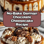 Indulge in this rich and creamy No-Bake German Chocolate Cheesecake that combines a chocolatey Oreo crust with a smooth chocolate cheesecake filling, topped with a luscious homemade coconut-pecan topping. Perfect for dessert lovers who want a decadent treat without needing an oven.