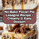 This No-Bake Pecan Pie Lasagna is a creamy, layered dessert combining crunchy graham cracker crust, smooth cream cheese filling, and rich pecan pie pudding layers. It’s an easy, make-ahead treat perfect for holiday gatherings or any occasion that calls for a decadent, yet effortless dessert.