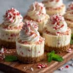 Delight in these festive No-Bake Peppermint Cheesecake Bites, combining a crunchy chocolate cookie base with a creamy, mint-infused cheesecake filling. Perfectly topped with crushed peppermint candies, these bite-sized treats are easy to prepare and require no baking, making them an ideal holiday dessert or anytime indulgence.