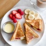 - Serve: Slice the French toast sandwiches in half, drizzle generously with maple syrup, and serve immediately while warm.