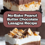 Peanut Butter Chocolate Lasagna is a rich and creamy layered dessert that’s perfect for peanut butter and chocolate lovers alike. With a crunchy Oreo crust, smooth peanut butter cream, and chocolate pudding topped with whipped topping and Butterfinger pieces, it’s sure to impress at any gathering.
