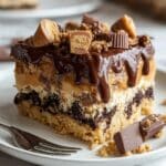 This Peanut Butter Cup Dump Cake is a decadent, easy-to-make dessert combining the rich flavors of chocolate and peanut butter in a simple layered cake. Featuring a creamy peanut butter mixture layered with chocolate cake mix and topped with melted butter and mini peanut butter cups, this cake is baked to golden perfection and served warm with optional chocolate syrup and whipped cream or vanilla ice cream for extra indulgence.