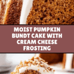 Keywords: Pumpkin bundt cake, pumpkin cake, fall dessert, pumpkin pie spice, cream cheese frosting, holiday cake