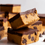 These Pumpkin Chocolate Chip Protein Bars are a delicious and nutritious snack perfect for a quick energy boost or post-workout refuel. Combining creamy almond butter, rich pumpkin puree, and a blend of vanilla protein powder with warm spices, these bars offer a moist, indulgent texture topped with a luscious dark chocolate and almond butter layer. They are easy to make without any baking, making them a convenient and healthy treat.
