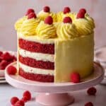 Keywords: raspberry cake, lemon buttercream, lemon cake, berry cake, fresh raspberry dessert, homemade cake, frosting, party cake, baking recipe