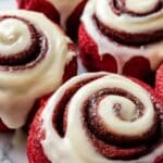 These Red Velvet Cinnamon Rolls combine the classic cinnamon roll flavors with a festive red velvet twist. Soft, tender dough is filled with a sweet cinnamon-sugar mixture, rolled, baked to golden perfection, and topped with a creamy cream cheese frosting. Perfect for a special breakfast or dessert treat with a rich, colorful appearance and decadent taste.
