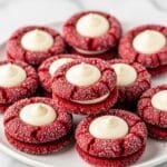 Red Velvet Cream Cheese Thumbprint Cookies bring a festive twist to a classic favorite. These tender, vibrant red cookies are filled with a smooth, rich cream cheese frosting that melts in your mouth. Perfect for holidays or any special occasion.