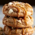 These Salted Caramel Crunch Cookies combine buttery sweetness with a delightful crunchy texture. Loaded with toffee and caramel bits and finished with a sprinkle of flaky sea salt, they offer the perfect balance of salty and sweet in every bite.