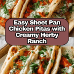 Sheet Pan Chicken Pitas with Herby Ranch are a delicious and easy-to-make meal perfect for busy weeknights. Juicy, seasoned chicken and colorful veggies roast together on one pan, then get stuffed into warm pitas with a fresh, tangy homemade ranch.