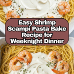 Keywords: Shrimp Scampi Pasta Bake, baked pasta, creamy shrimp pasta, seafood casserole, garlic butter pasta