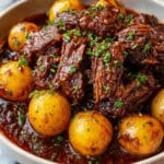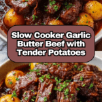 This Slow Cooker Garlic Butter Beef with Potatoes is a comforting, hearty meal perfect for busy days. Tender beef chuck roast cooks low and slow with flavorful garlic butter sauce and tender baby potatoes, making a delicious, no-fuss dinner.