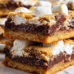 Store the s’mores cookie bars in an airtight container at room temperature for up to 3 days. For longer storage, keep them in the refrigerator for up to a week. Reheat briefly in the microwave to soften the marshmallow and chocolate before serving.