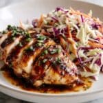 - Plate and serve: Arrange the sticky apple cider chicken thighs on plates alongside a generous portion of the crisp autumn slaw. Serve immediately to enjoy the perfect harmony of sticky, sweet chicken and refreshing, crunchy slaw.