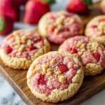 Strawberry Crunch Cookies are a delightful twist on the classic Strawberry Crunch Ice Cream bars, featuring a buttery and chewy cookie base loaded with freeze-dried strawberries, creamy white chocolate chips, and a crispy strawberry crunch topping for a perfect balance of textures and flavors.