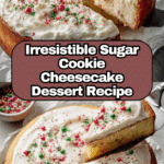 This Sugar Cookie Cheesecake Dessert combines the buttery, festive charm of sugar cookies with a creamy, luscious cheesecake filling. Topped with white chocolate ganache and sprinkles, it’s a delightful treat perfect for special occasions or any sweet craving.