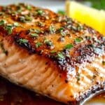 Texas Roadhouse Style Baked Salmon is a flavorful and easy-to-make dish featuring tender salmon fillets marinated in a zesty blend of olive oil, honey, soy sauce, Dijon mustard, garlic, and spices, then baked to perfection. This recipe offers a perfect balance of sweet, savory, and tangy flavors, making it ideal for a delicious and healthy weeknight meal.