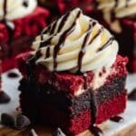 These Vampire Bite Red Velvet Brownies are a festive and decadent treat perfect for Halloween or any spooky occasion. Rich red velvet batter meets dark chocolate chips, topped with a creamy cheesecake swirl for an irresistible bite.